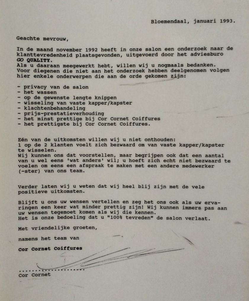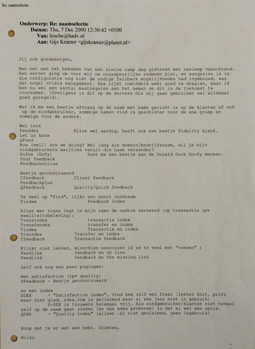 Internet was nog amper ingevoerd in Nederland. Maar toen die technologie eenmaal op grotere schaal gebruikt werd, kon Gijs z’n ei kwijt ('iedere klant heeft recht op feedback') en z’n plan doorzetten.