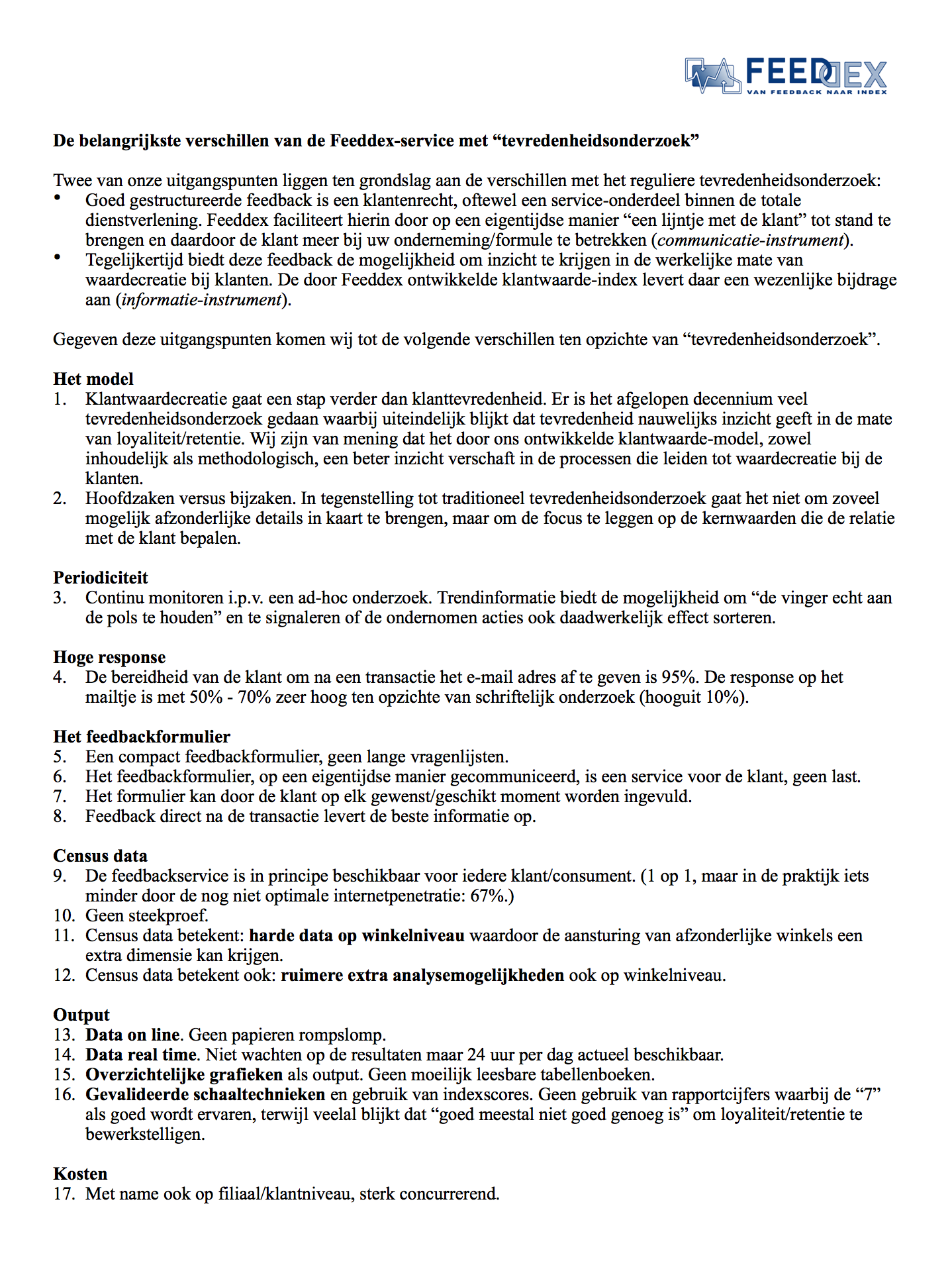 Tot in de jaren 1990 (en ook nog wel daarna) werd 'klanttevredenheid' gemeten op een traditionele manier, steekproefsgewijs, op schrift, per telefoon of in persoonlijke gesprekken.