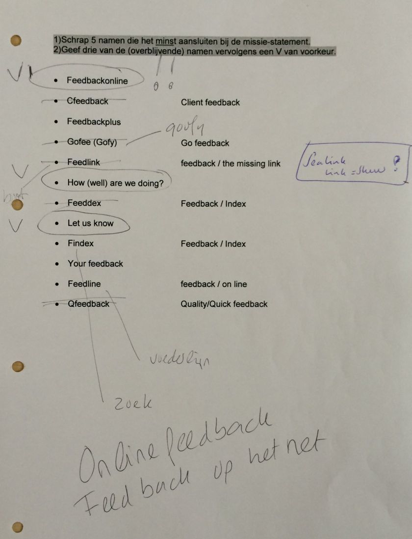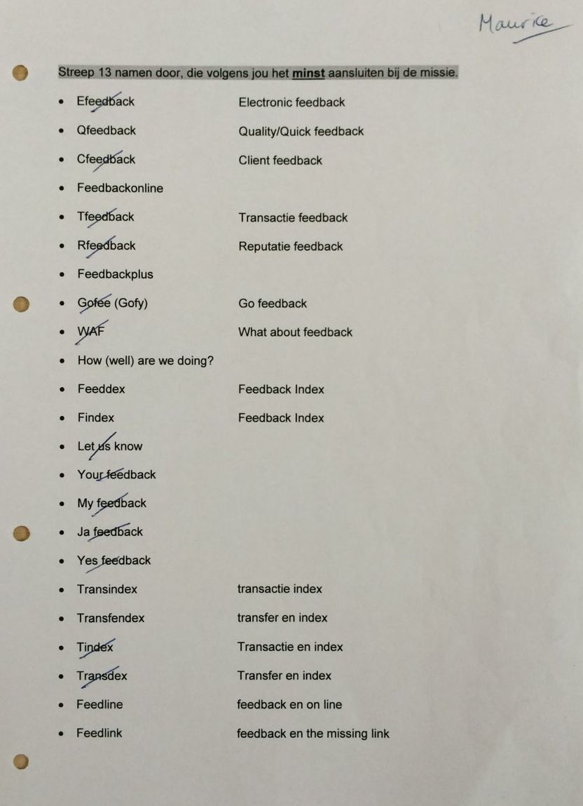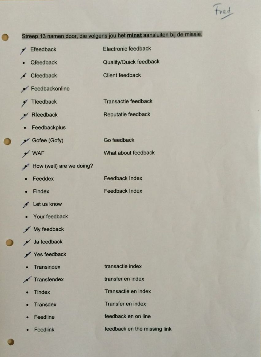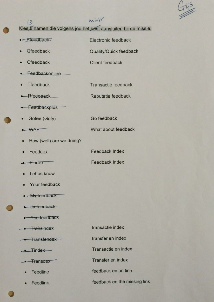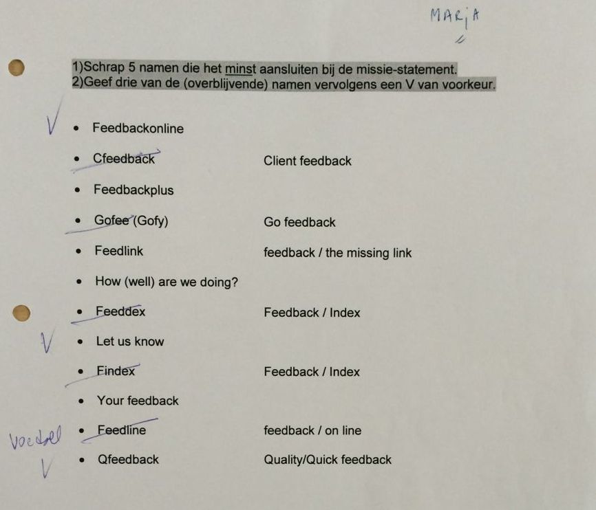 In 2000 ging dat vorm krijgen en er volgden brainstormsessies o.a. in de huiskamer met Margot en Marja, over een naam voor het bedrijf, gekoppeld aan het woord 'feedback'.